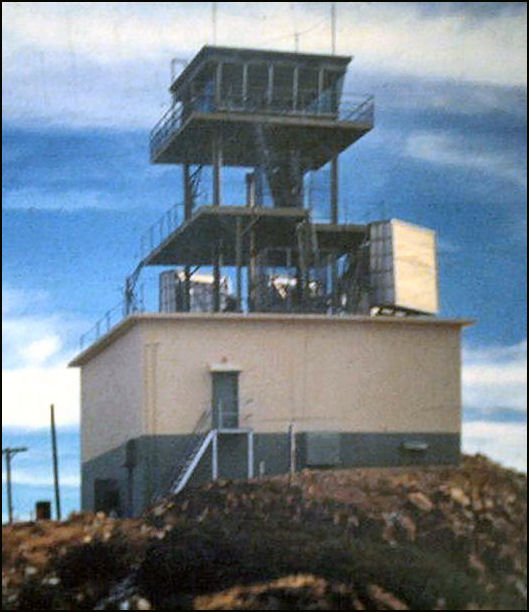 The first tower was a unique ground-mount two-level peak roof structure built in 1913. This was replaced in the 1930s with a 75' X-Brace steel tower with 7'x7' Aeromoter cab. The tower height was lowered to 20' in the late 1940s. A C2 Fireman/Lookout 19'x30' ground cabin was also contructed - a Region 5 BC-201 design. In 1951, that lookout was replaced with a 35' H-Brace steel tower with a modern C-10 13'x13' all steel live in cab. In 1964, the AT&T telephone company constructed a telephone relay building on the exact site of the lookout.