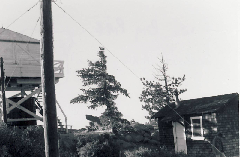 West Big Pine Mountain was constructed in 1934, a California Region 5 Plan BC-301 cabin on a 10 foot open timber tower. An Aircraft Warning System residence cabin was added during WWII so the tower could be staffed 24 hours a day.