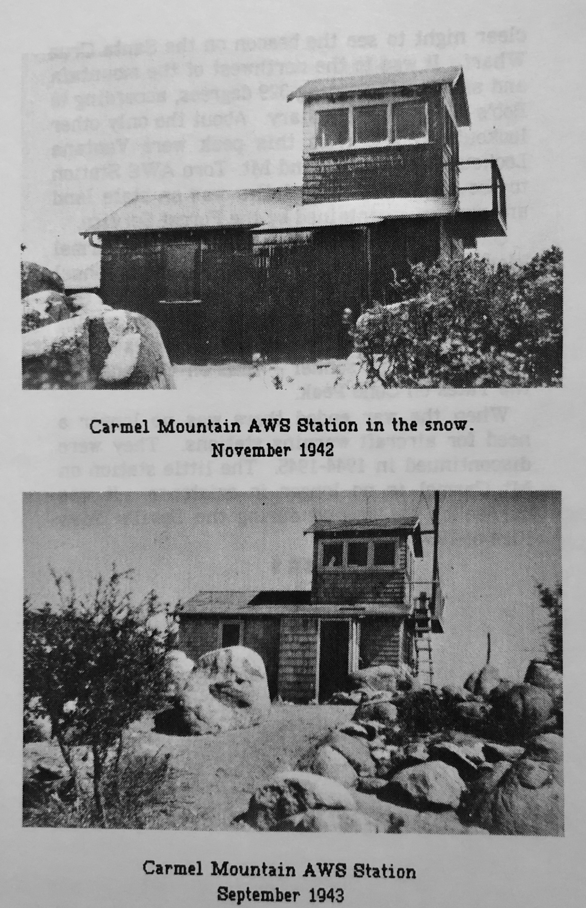 Mount Carmel was a short lived Aircraft Warning Service post constructed in 1943. The building was the standard AWS ground cabin and observers cupola design.