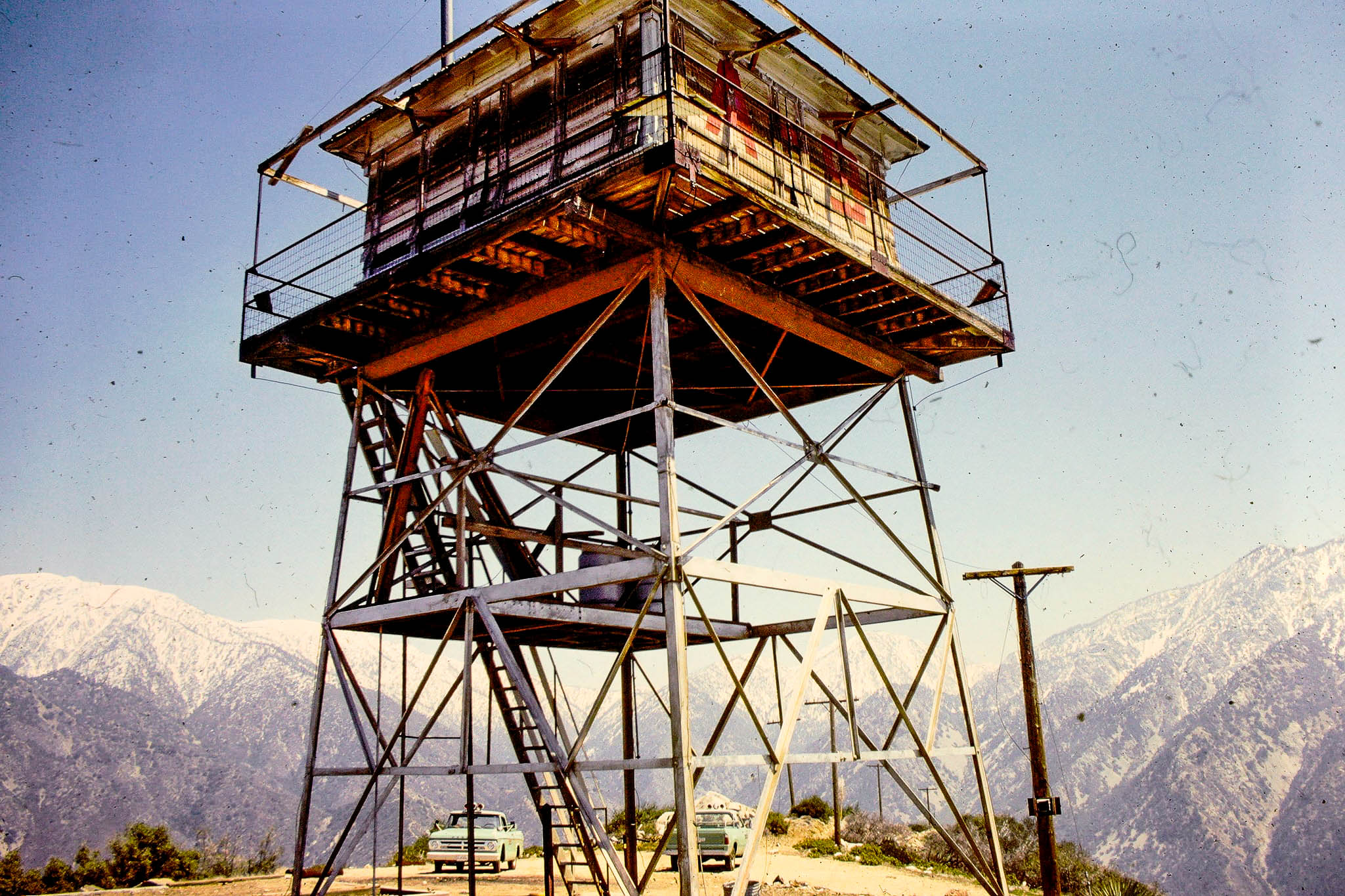 Ron Kemnow's site recounts stories of a 1928 lightning storm that destroyed the cabin, construction of the motorway in 1938 (eliminating the need of a pack train to bring supplies,) and a December 1938 fire which threatened the tower. Nonetheless, lookout Sherman Foster remained at his post. Both he and the tower survived.