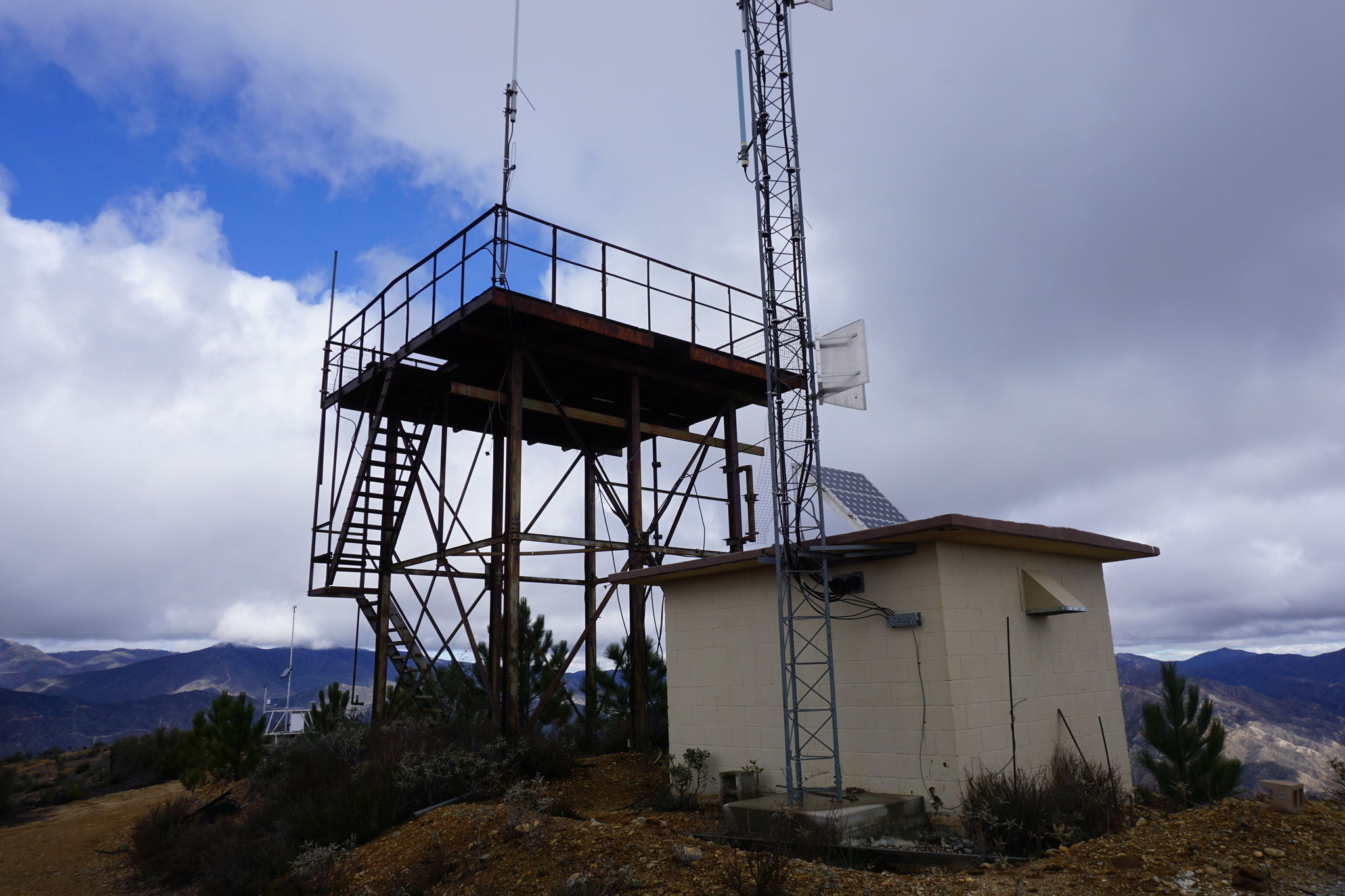 Warm Spring Mountain Lookout was constructed in 1934. The cabin is a California Region 5 Plan BC-301 on a 20 foot H-Brace open steel tower.