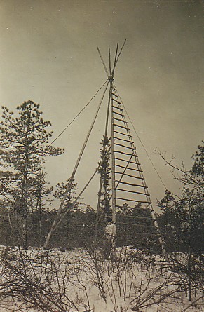 This was a "lookout" observation post built by area fire wardens. It was made of native timber cut from the woods with a crude ladder attached to one side. Many of these were built in the Pinelands very early also at Dukes Bridge, Tabernackle and Whites Bog. Some even predated the establishment of the State Forest Fire Service on July 4, 1906.