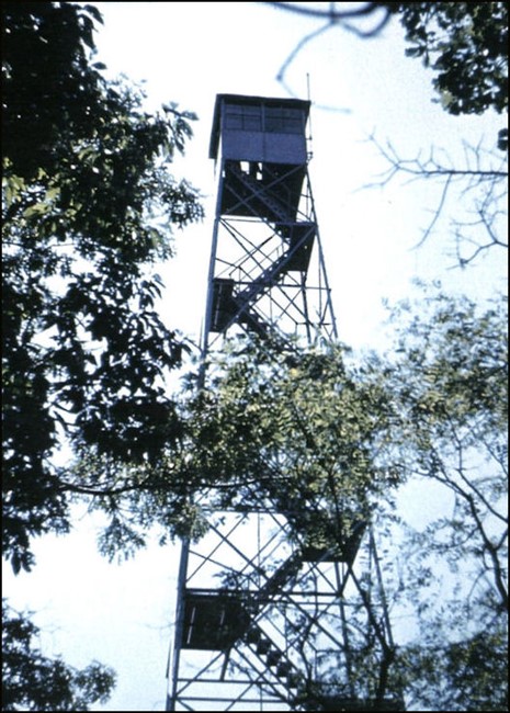 This Aermotor model LS-40 with 80' concrete footings, steel structure, wood steps and landing platforms was built in 1948, closed in 1959 and removed in 1960 by the NY State Conservation Commission - Bureau of Forest Fire Control. The land is now privately held.